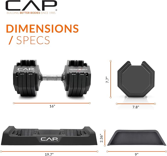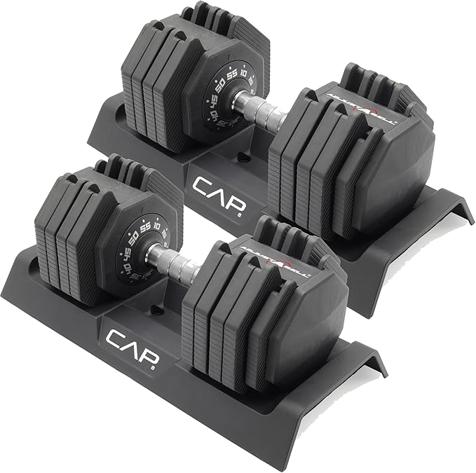 CAP Barbell ADJUSTABELL Adjustable 55 lb Hex Dumbbell Weights - Singles & Pairs | Multiple Handle Options