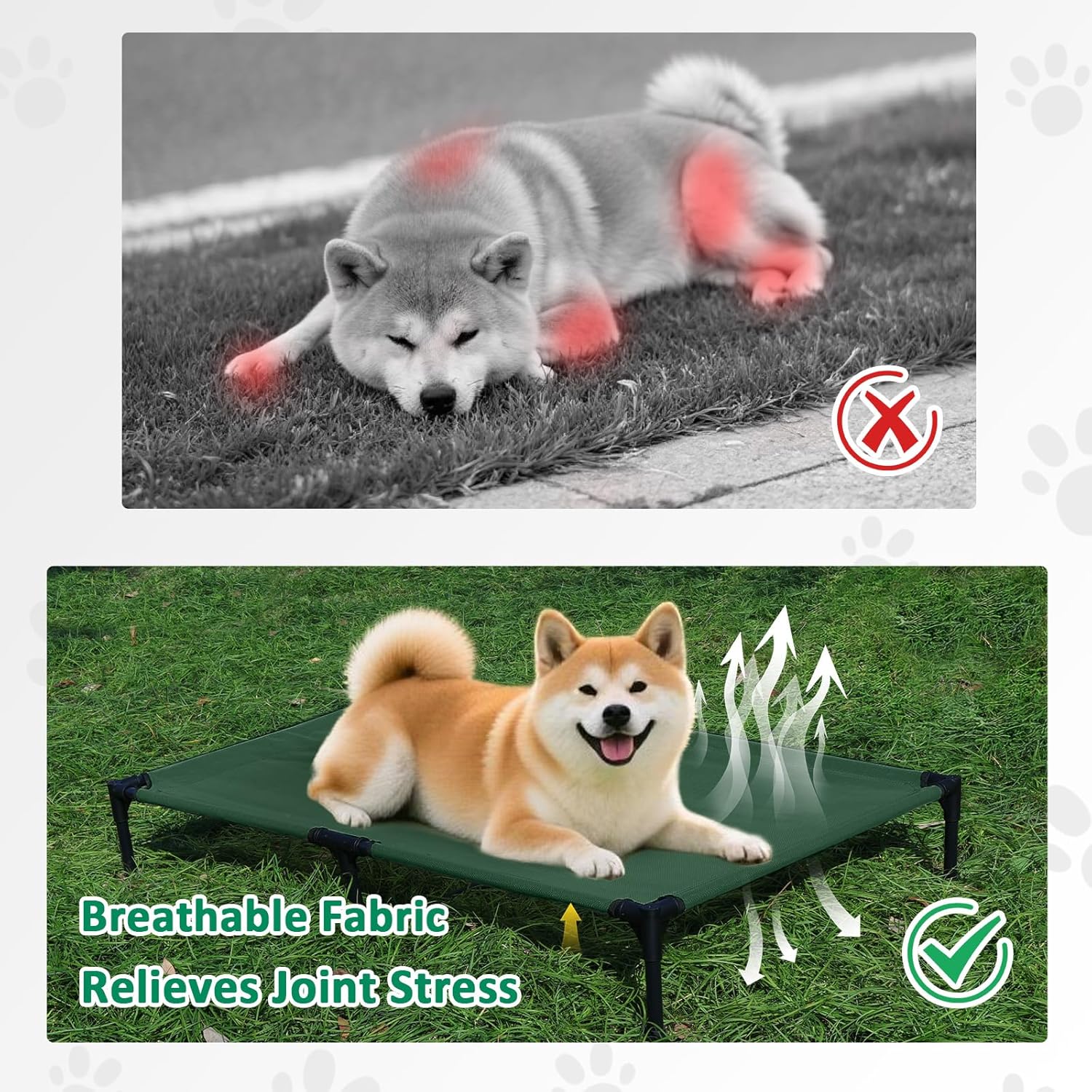 35 Inch Cooling Medium Elevated Outdoor Dog Bed, Raised Dog Cot Beds with Breathable & Washable Mesh, Lifted Pet Hammock Bed with Anti-Slip Feet (M, Green)