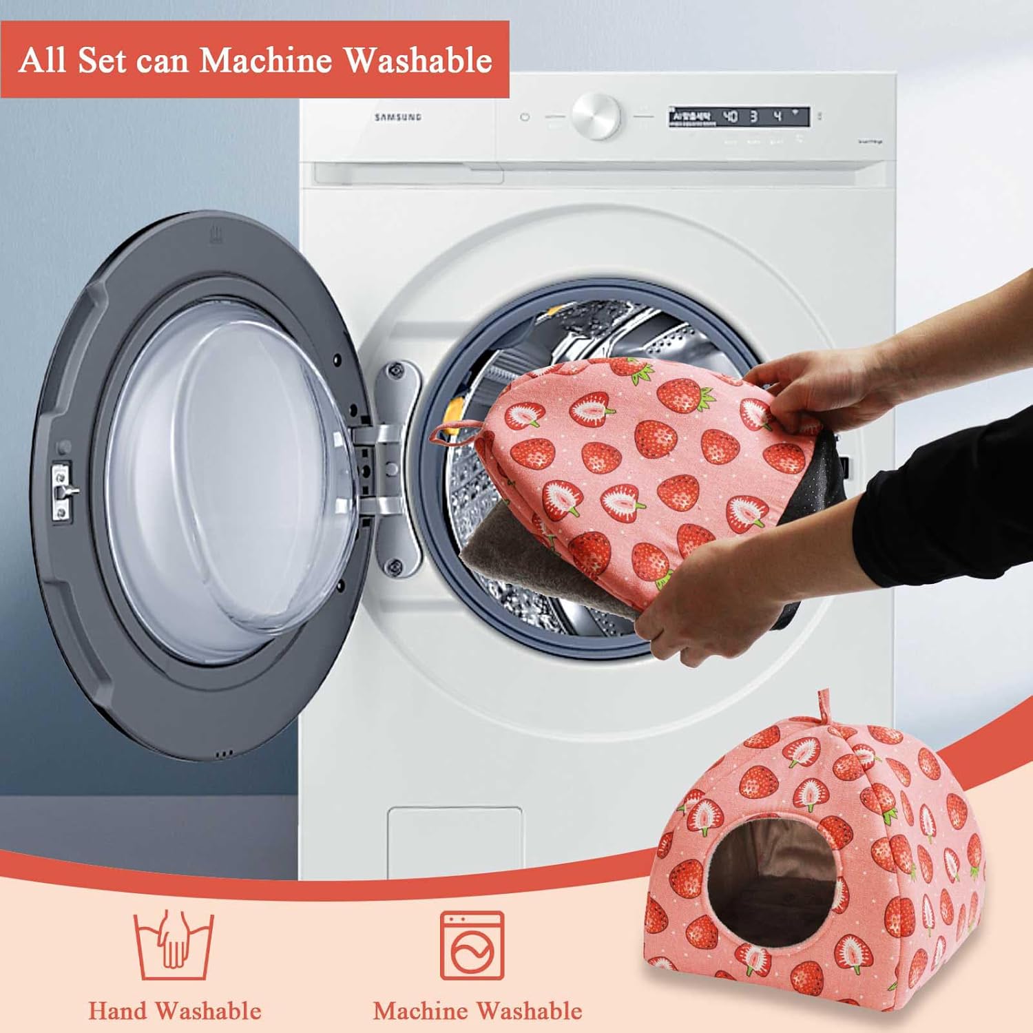 - Multi-Scenario Functional Design--This versatile hideout serves as a cozy sleeping bed, a hideaway for cages, or a comfortable lap cushion for bonding time. Whether your pet needs a nap or a safe spot to retreat, this bed provides the perfect solution.Bright colors and whimsical strawberries make them stylish standalone decor even when not in use by pets