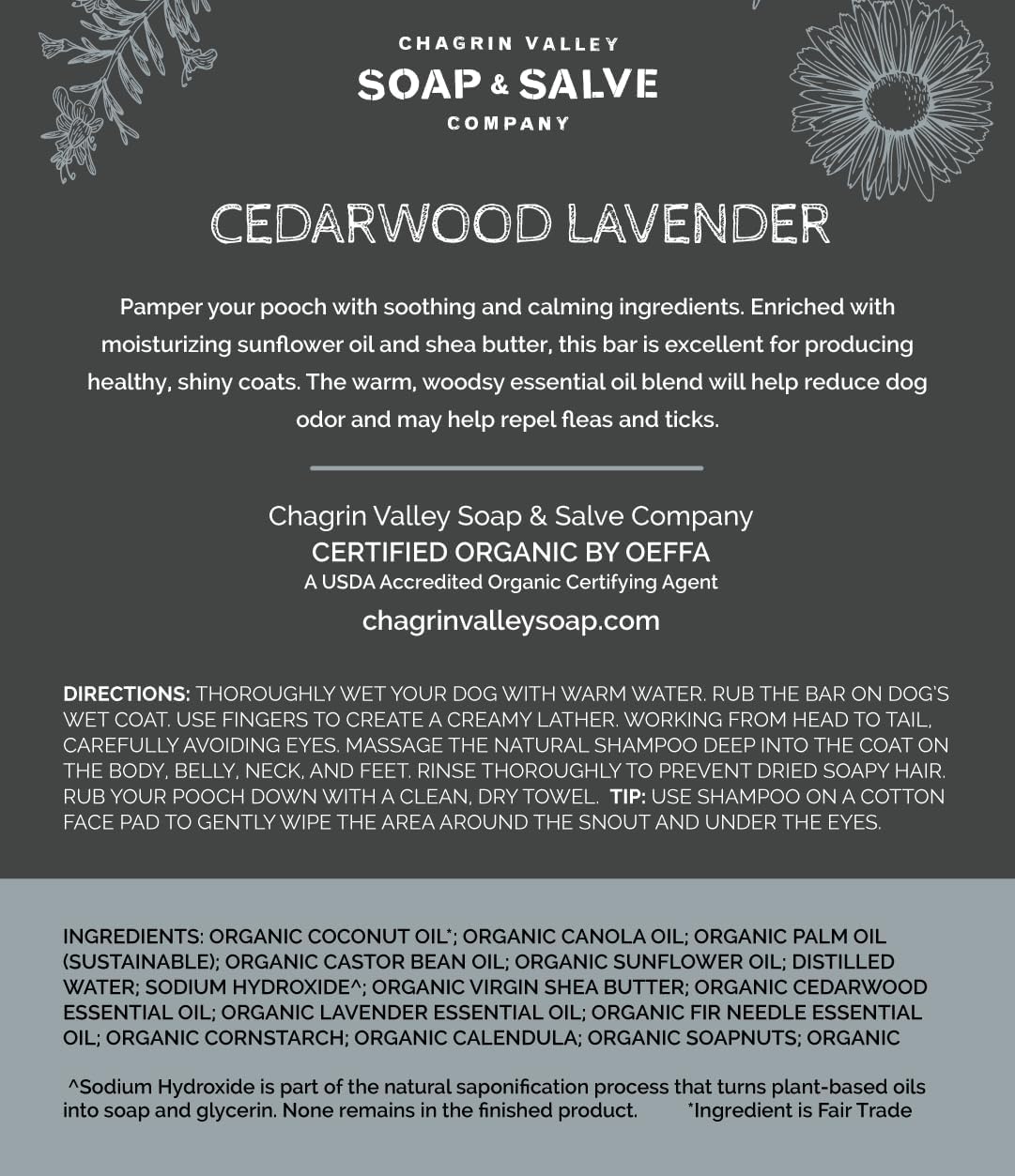 Chagrin Valley Soap & Salve Organic Dog Shampoo and Conditioner - Puppy Shampoo Itchy Skin Relief and Puppy Essentials - Natural Handmade Cedarwood Lavender, 3.8 oz Bar Soap 3-PK