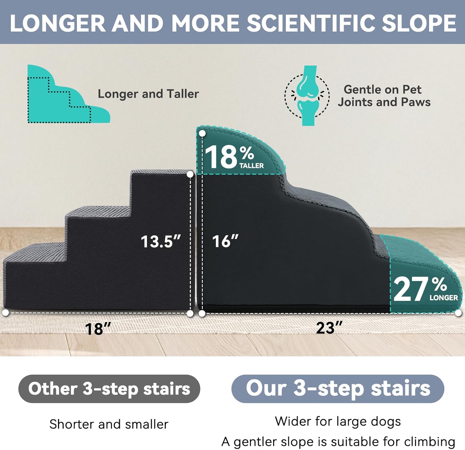 Dog Ramp and Stair for Bed 16" H-20 H,3-Step Cat Stair for Sofa and Chair,4-Step Dog Ramp for High Bed and Window,Durable Nonslip Fabric Cover for Indoor (Dark Grey-16 H, Pet Friendly, 3)