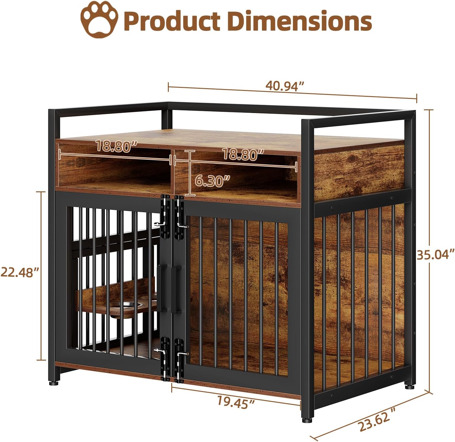 - [GENEROUS EXTRA STORAGE SPACE] Maximize your living space with the dog crate's top shelf, which offers additional storage for decorative items such as photo frames, lamps, or flowers. The enclosed storage cubes beneath provide ample space for pet toys, dry food, and other supplies, keeping your home neat and organized. This combination of pet functionality and aesthetic appeal makes it easy to maintain a tidy environment while catering to your pet’s needs.
