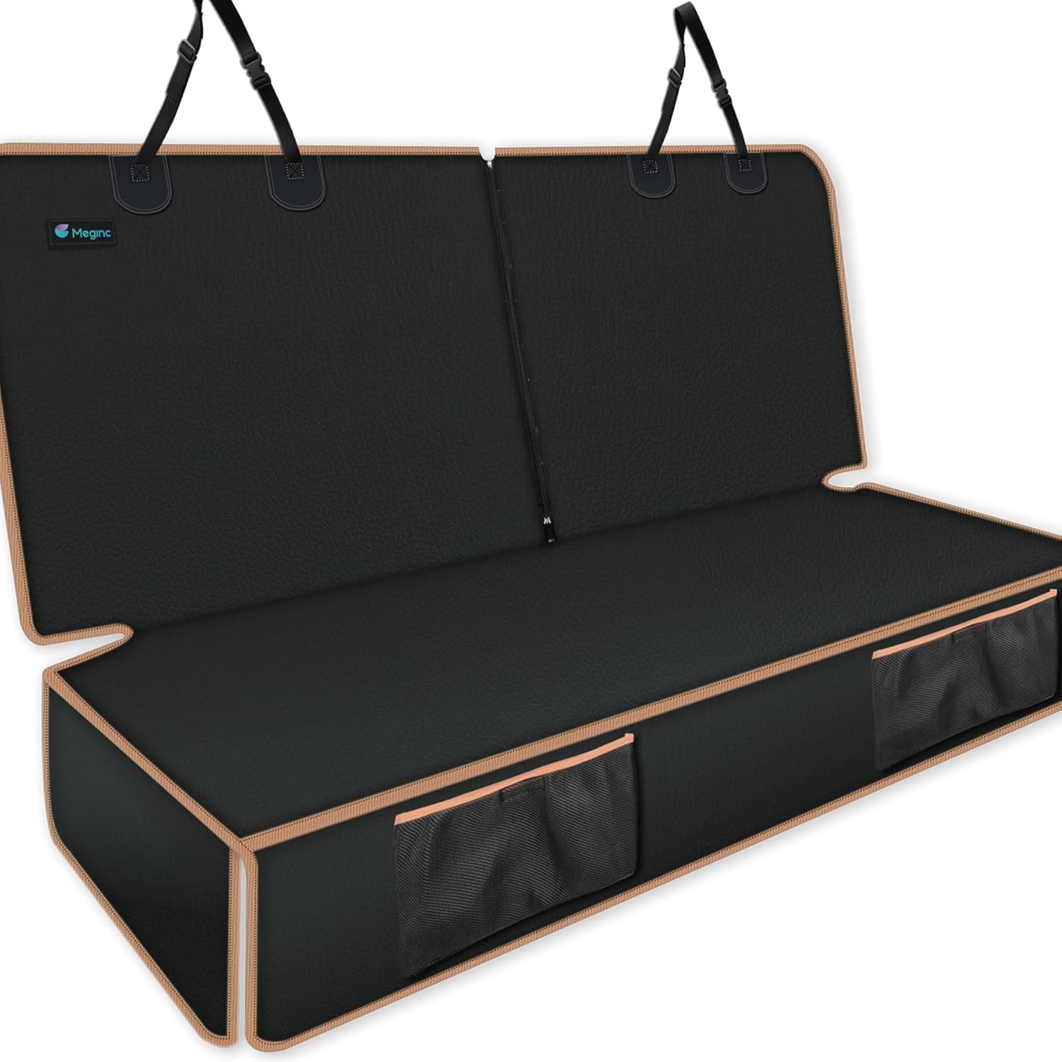 Dog Car Seat Cover for Back Seat, Waterproof PU Leather Bench Seat Covers for Trucks Ford F 150/Ram 1500/Chevy Silverado/GMC Covers, Non-Slip Back seat Pet Cover for Dogs in Car, Easy to Use and Clean