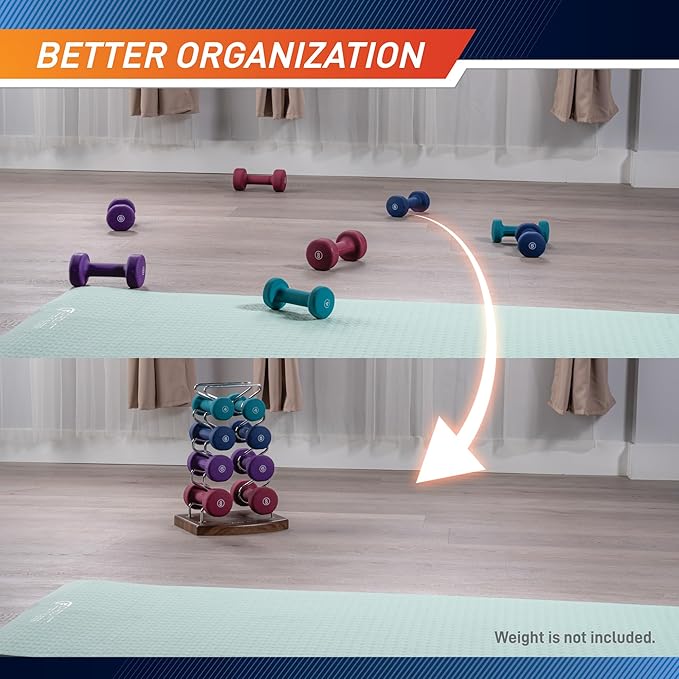 - Maximum Weight Capacity: 100 LB – Holds multiple neoprene dumbbells securely.