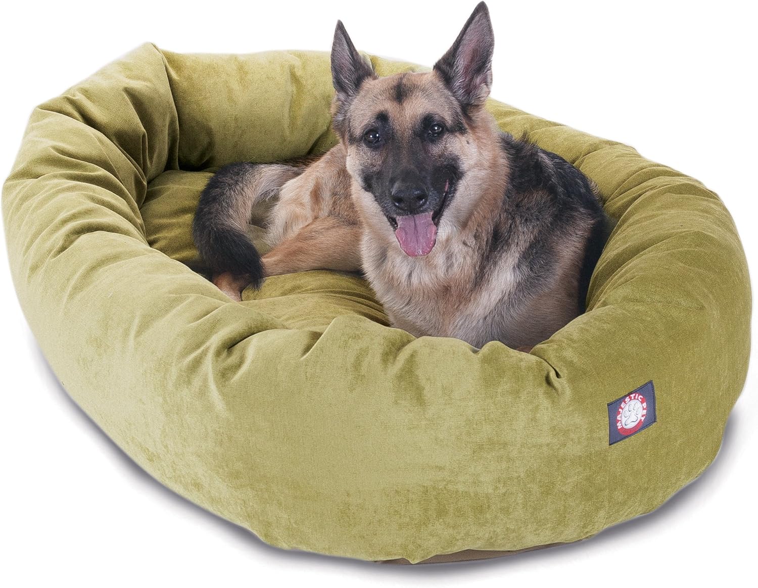 Majestic Pet 52 Inch Micro Velvet Calming Dog Bed Washable 52x35x11 (inch) – Cozy Soft Round Donut Dog Bed with Spine for Head Support -Pet Bed X- Large – Apple (2025)