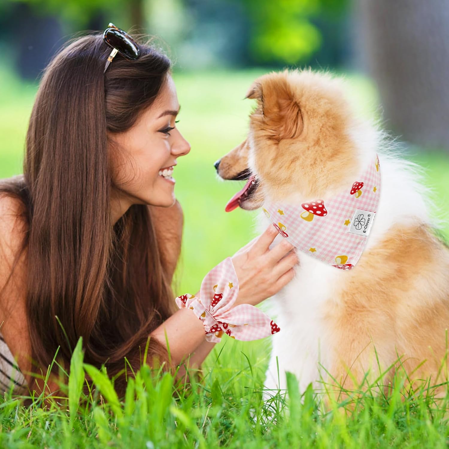 - Matching Bandana and Scrunchie Set- It’s full of love when your pets is wearing the pink plaid bandanas and you are wearing the bow scrunchies. When traveling, sleeping, taking photos or daily warking, adorable dog spring bandana and scrunchie is a pretty accessories. The the hair tie can be worn as a wrist accessory and hold your hair. Beautiful dog drool bibs and scrunchie with pink buffalo plaid and mushrooms pattern, it’s nice photo props.