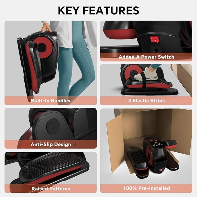 - "WHISPER - QUIET: SILENT UNDER DESK ELLIPTICAL MACHINE The professional triangular claw structure enables the product to rotate more smoothly and with lower noise levels. The anti - slip sticker structure on the roller is more labor - saving and quieter compared to the design of regularly applying lubricating oil. Ideal for open - plan offices, nurseries, or TV - time workouts."