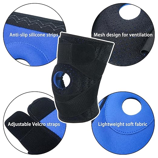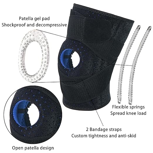 - The knee support has open patella design and patella gel pad surrounds the kneecap for shockproof and decompressive. The knee compression sleeve is made of mesh and elastic fabric which is breathable and lightweight