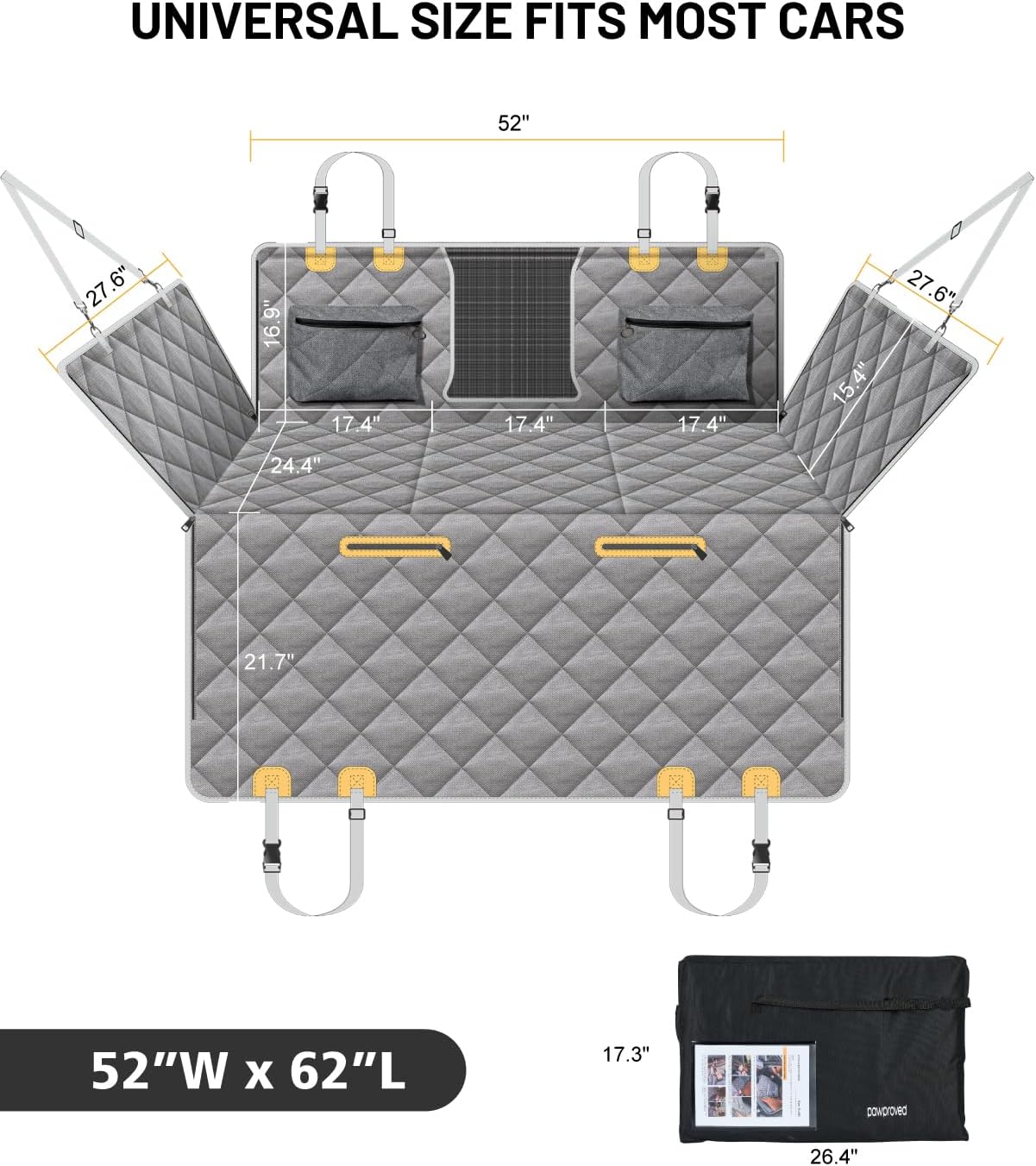 - Extended Activity Space: Our car hammock (52.3”W x 24.4”D) prevents footwell sliding, expands space by 40%, and ensures safety for movement and stretching to ease travel anxiety. Offers full rear-seat coverage, ideal for large breeds, older dogs, or multi-dog households.