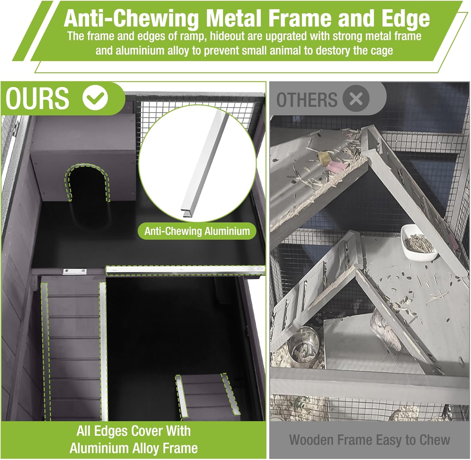 - Anti-Bite: All arounded metal frame and aluminum alloy edge of ramp and small house, preventing pets from chewing on it and ensuring long-lasting durability