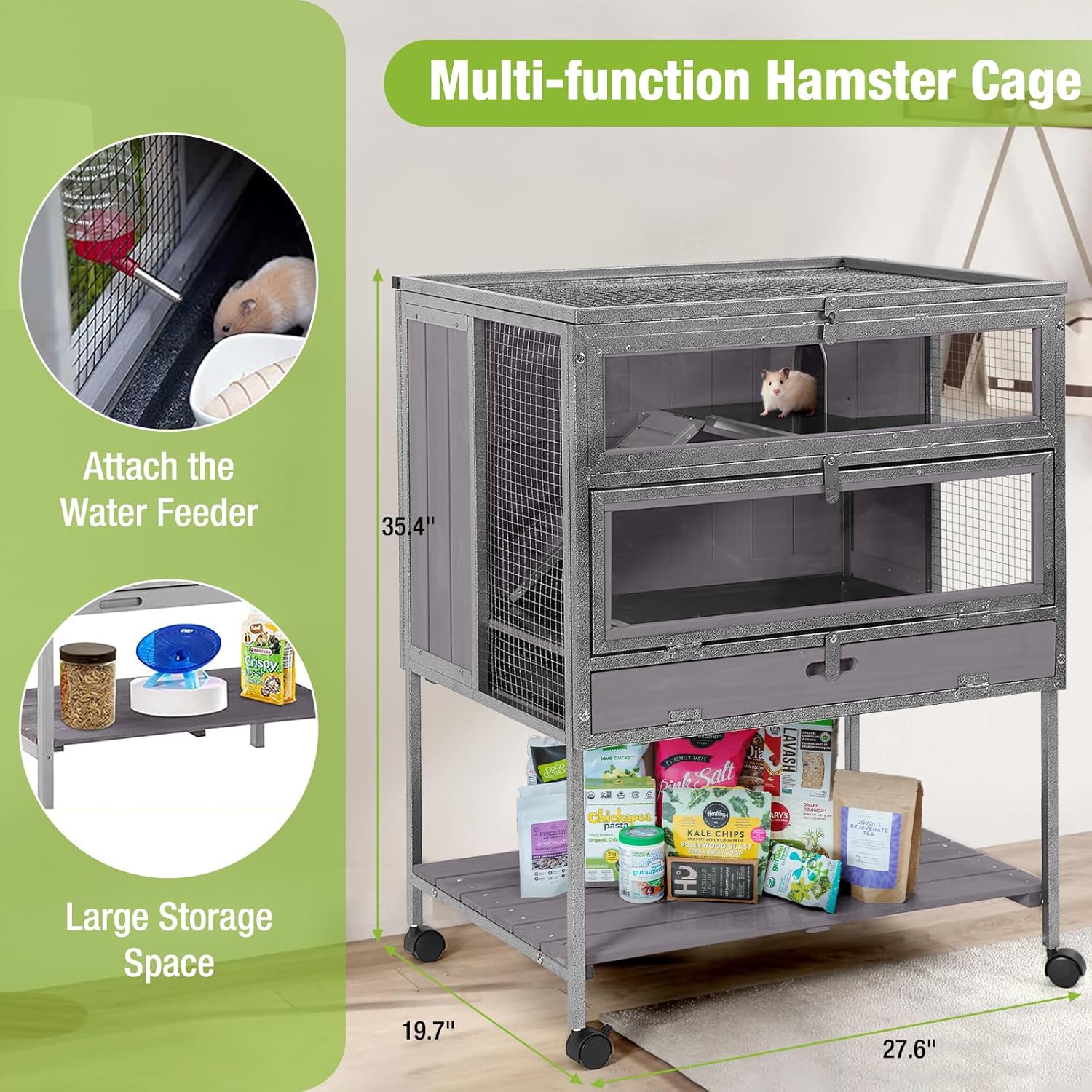GUTINNEEN Guinea Pig Cage Hamster House with Anti-Chewing Metal Frame Rat Cage with Wheels and Storage