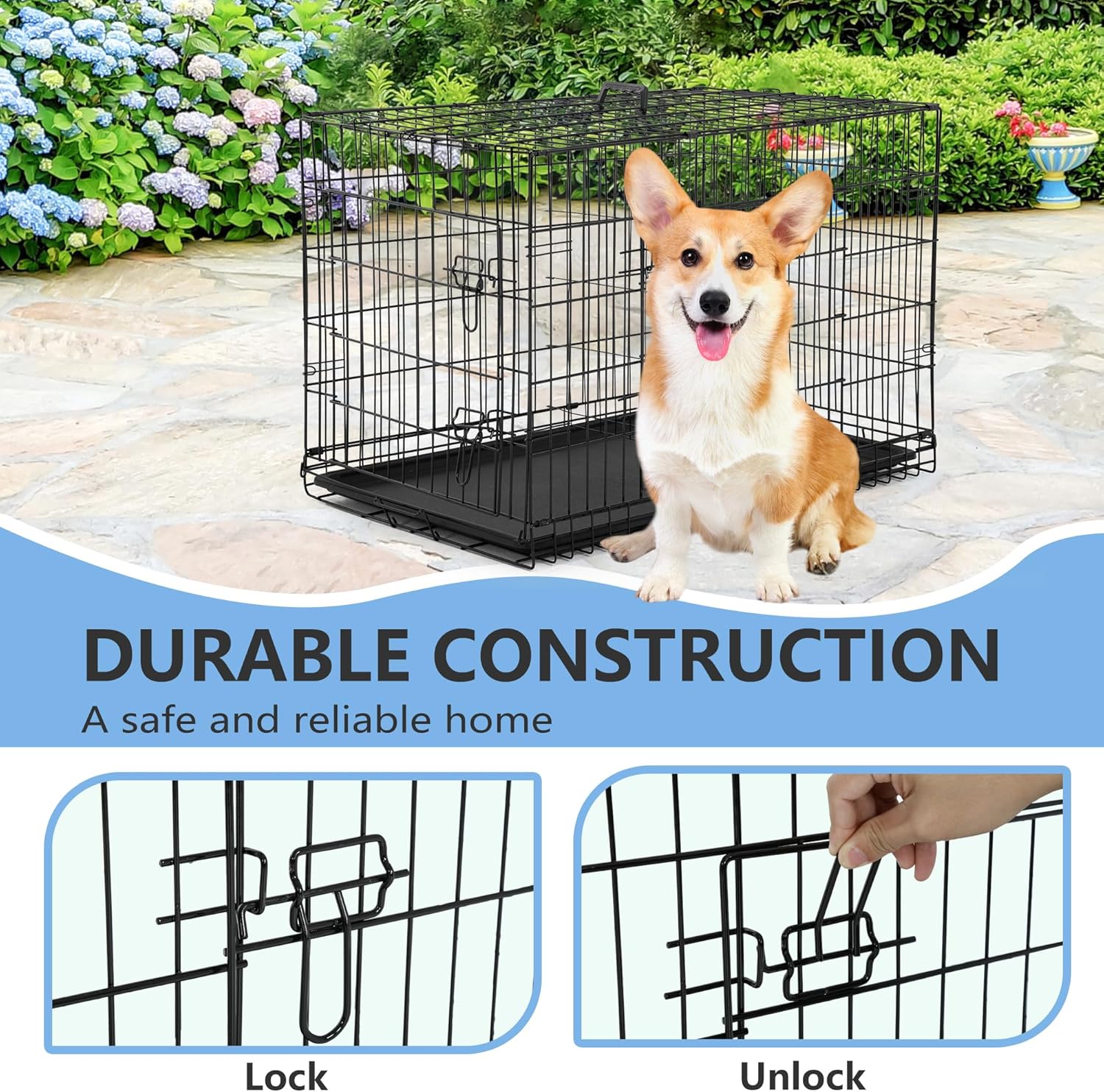 FDW 30 inch Dog Crate Dog Kennel Cage with Double Door Folding Metal Wire Dog Cage with Removable Tray&Divider Panel,Pet Crate for Medium Dogs,Black