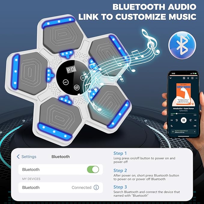 - Bluetooth Connectivity & Performance Tracking: Connect your device to the punching machine via Bluetooth, stream your favorite music, and track every hit with the built-in counter for an immersive boxing experience.