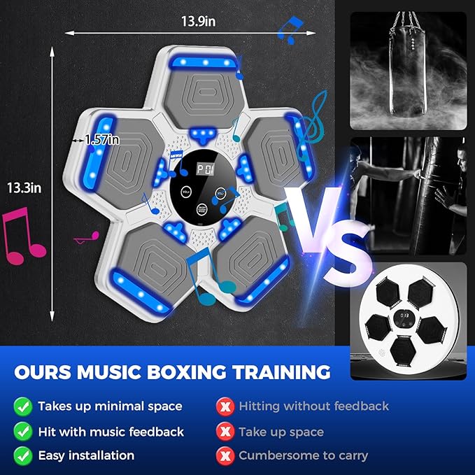 - Versatile Boxing Machine: Elevate your workout with multiple speed options and dynamic lighting effects. This music boxing machine offers an engaging fitness experience tailored to your needs.