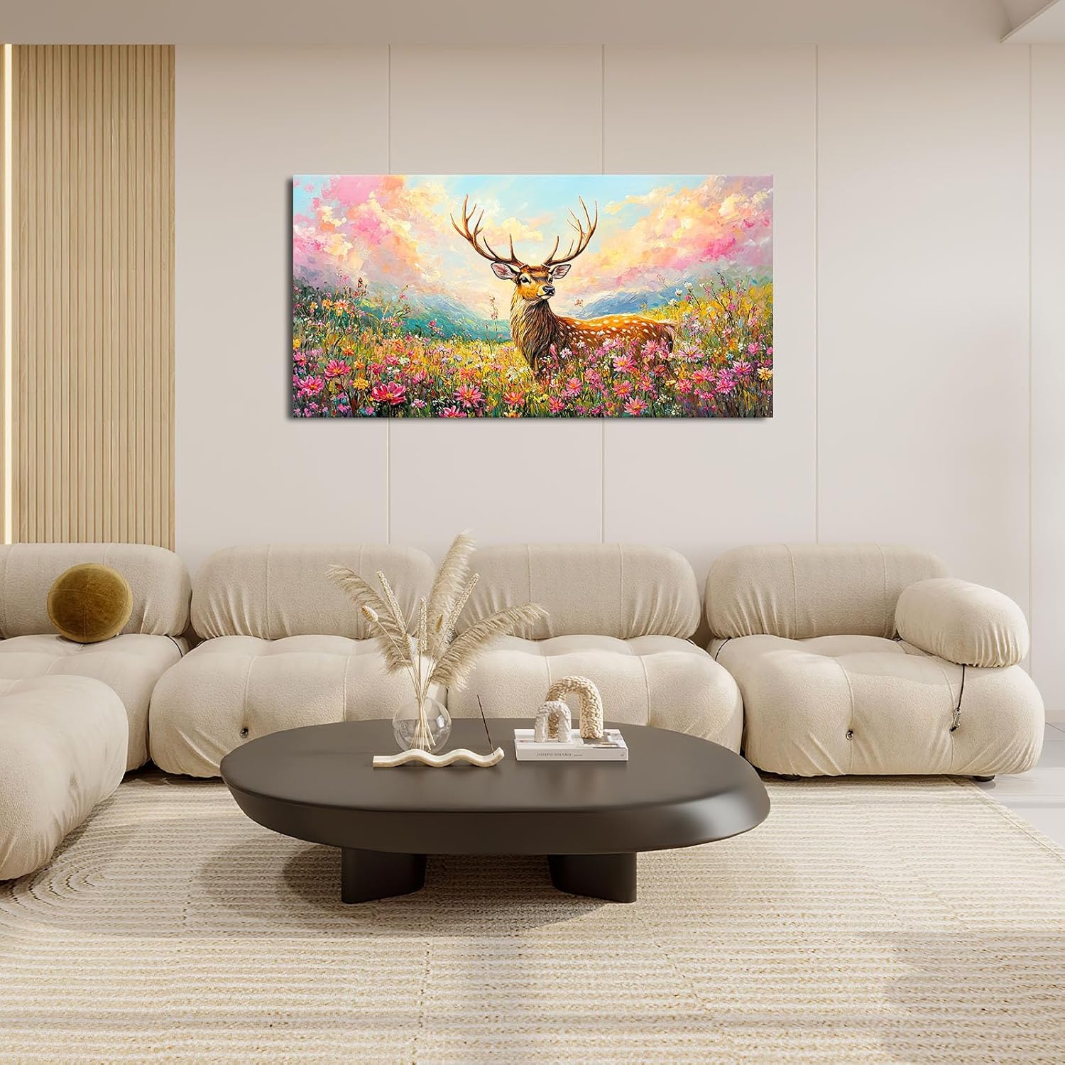 Deer Large Wall Art Wildflower Landscape Pictures Rustic Flowers Wall Decor Wild Animal Nature Canvas Print Painting Artwork for Bathroom Living Room Bedroom 30"x60"