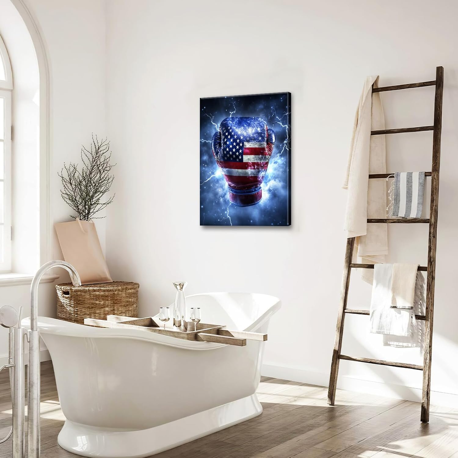 Sports Boxing Wall Art Canvas American Flag Wall Decor Prints Framed Painting Pictures Gifts Artwork for Bathroom Living Dining Room 16"x24"