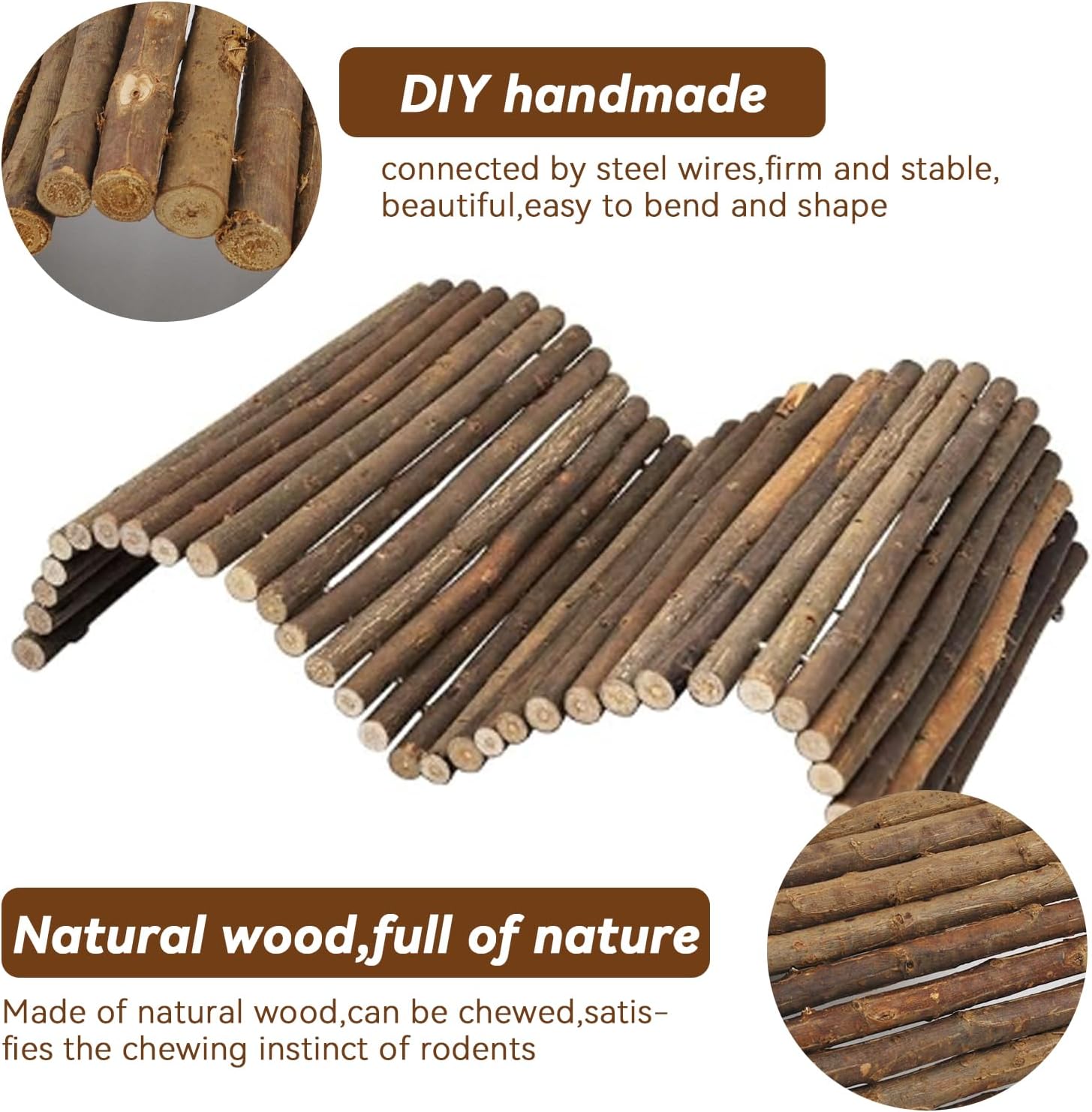 - 【Product Features】Guinea pig wooden bridge internal metal wire can be freely bent,pliable and flexible,wooden rabbit hideout can be designed into tunnels,bridges or slopes and other shapes,adding more fun for pets. And the wood rabbit hideout made of solid wood is very sturdy,durable and practical.