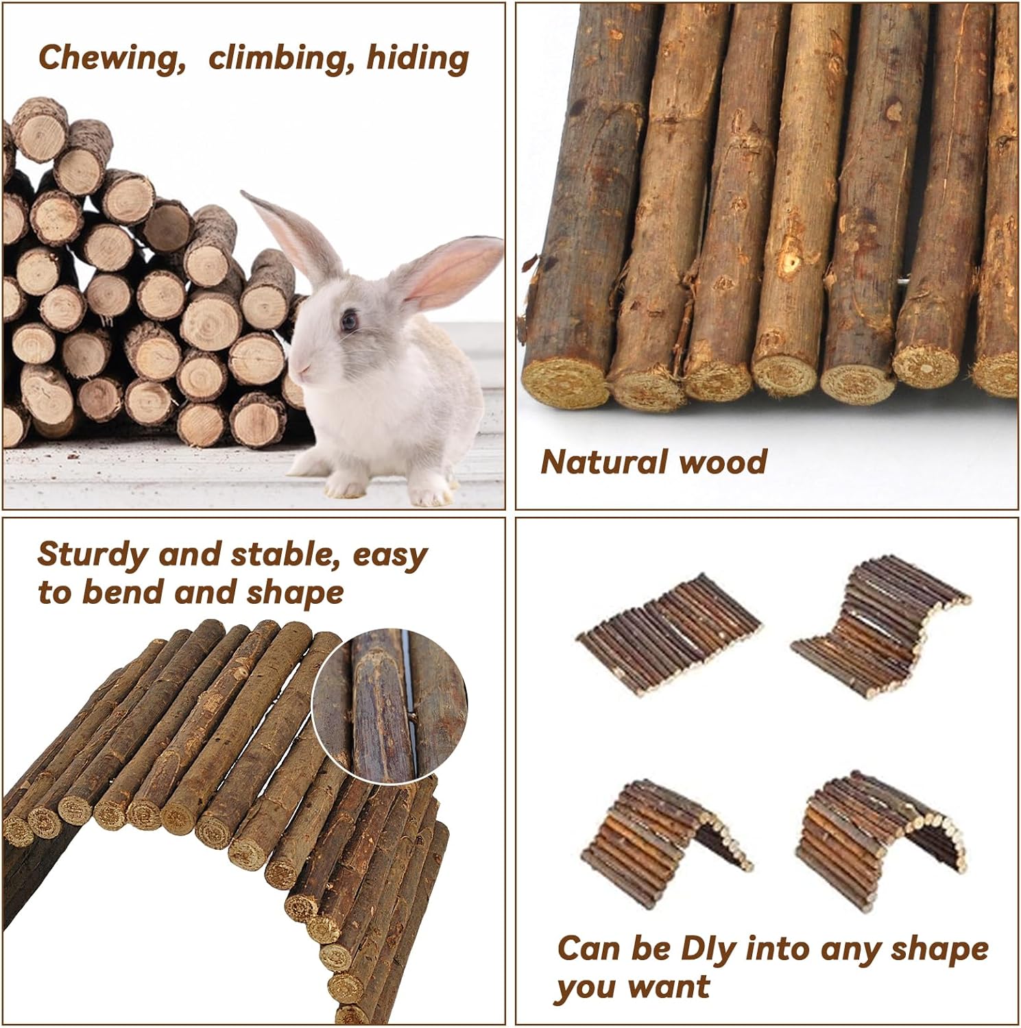 - 【Pure Natural Wood】Please note before purchasing our rabbit hideout wood tunnel is suitable for medium to big sized rodent pets.Rabbit wooden bridge is made of pure natural apple wood,no paint or chemicals,and rabbit tunnel wood can be eaten,extra large wooden ladder bridge can be safely used for your pet.The small animal wooden bridge is full of natural charm and is a very good decoration