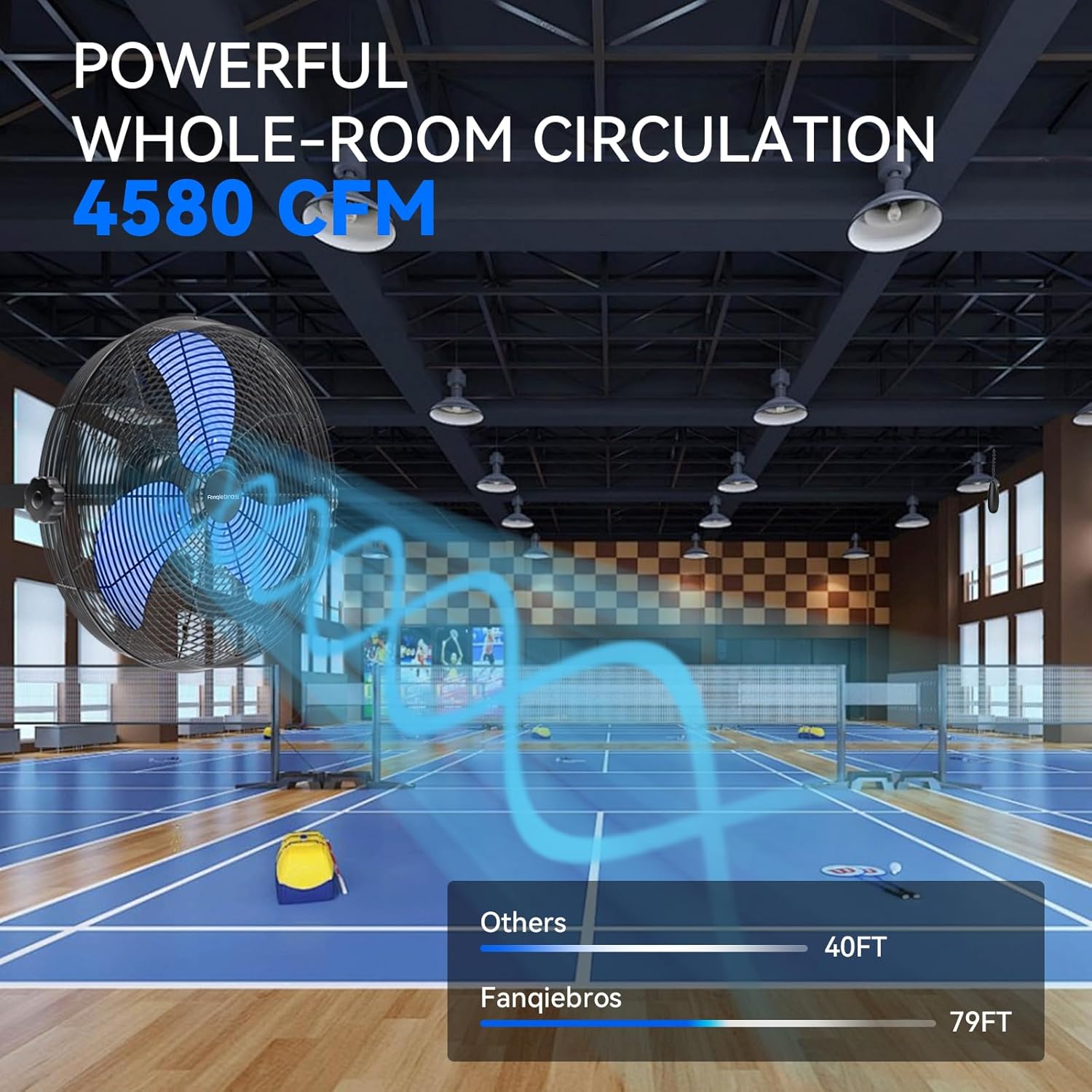 - 𝐋𝐨𝐰-𝐍𝐨𝐢𝐬𝐞 𝐃𝐞𝐬𝐢𝐠𝐧 - The heavy-duty wall fan operates at a high speed of 4580 CFM with a noise level of only 60dB, which is lower than the industry standard, creating a quieter gathering or working environment