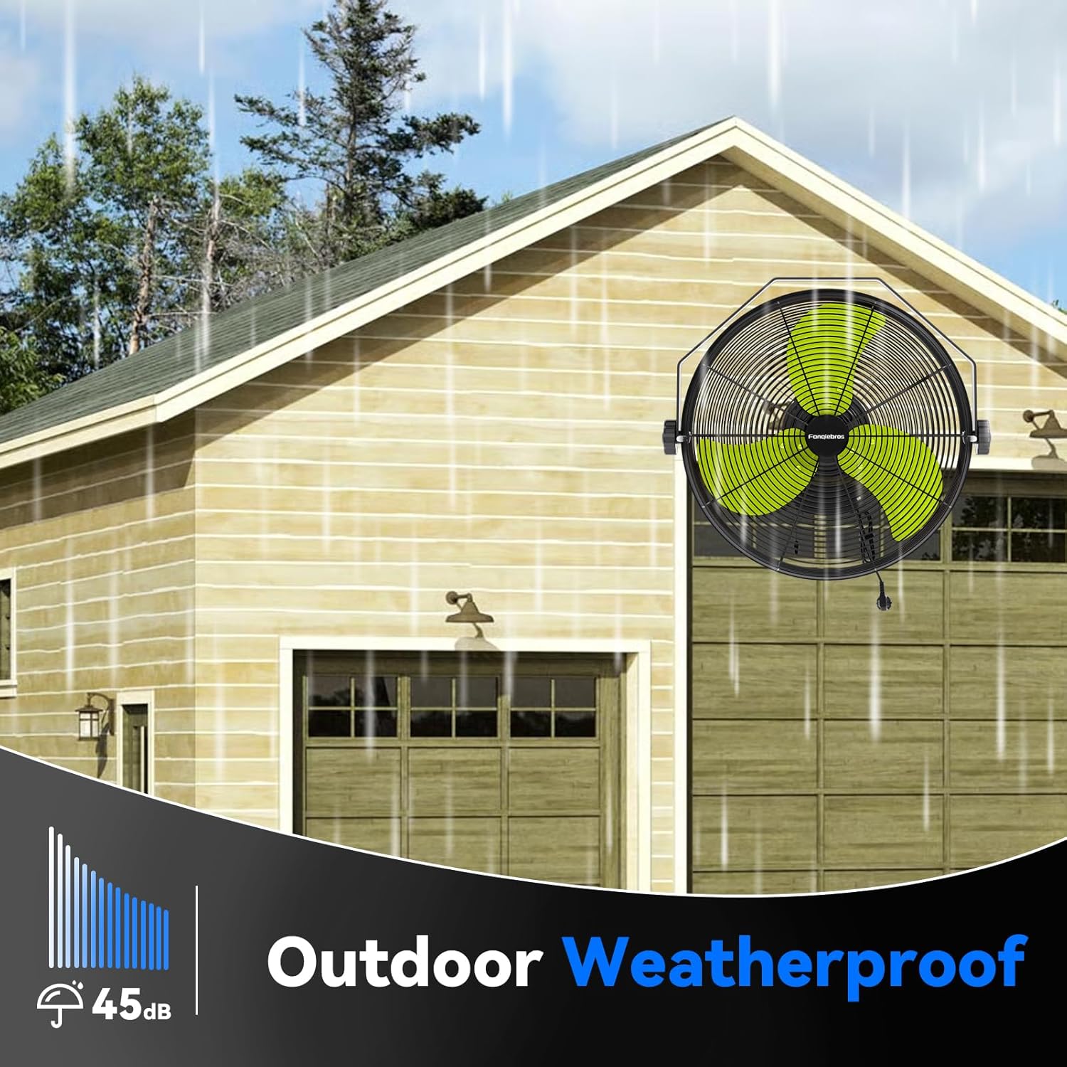 - 𝐇𝐢𝐠𝐡 𝐕𝐞𝐥𝐨𝐜𝐢𝐭𝐲 𝐀𝐢𝐫 𝐅𝐥𝐨𝐰 - Equipped with 3 adjustable wind speeds, low (2100CFM), medium (2300CFM) and high (2600 CFM), this wall fan utilizes the raw power of the pure copper motor to provide hurricane-like airflow to perfect for outdoor patio, garage, warehouse, humidity environments, dust
