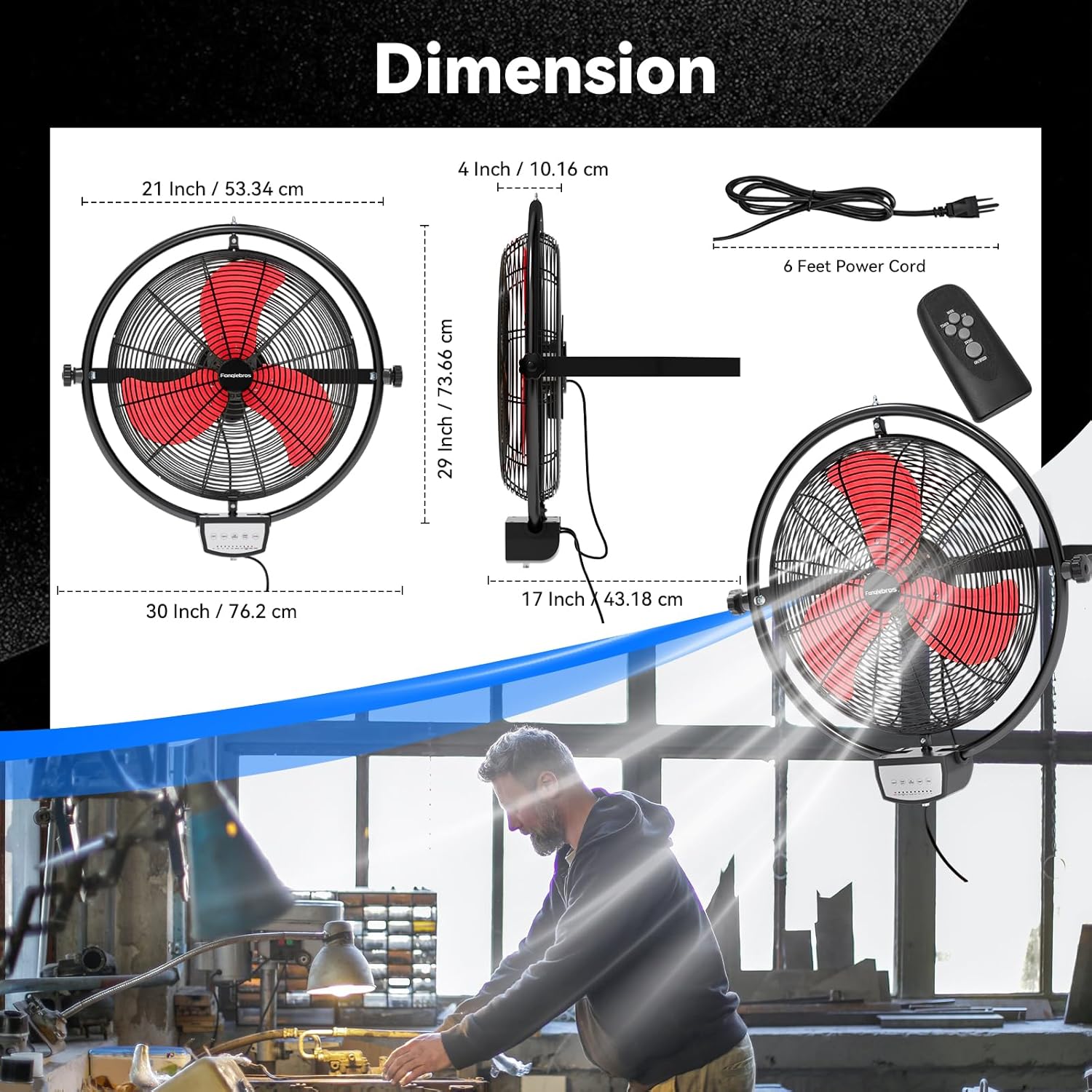 - 𝐇𝐢𝐠𝐡 𝐕𝐞𝐥𝐨𝐜𝐢𝐭𝐲 𝐀𝐢𝐫 𝐅𝐥𝐨𝐰 - The heavy duty wall fan design makes the operation more intuitive and simple, and the high, medium and low speeds can be adjusted by the remote control to meet different needs. High speed 5500 CFM, medium speed 4000 CFM, low speed 3800 CFM, providing hurricane-like airflow to meet your garages, shops or outdoor use(Note: used on a covered patios or porch, BUT NOT EXPOSED TO RAIN)