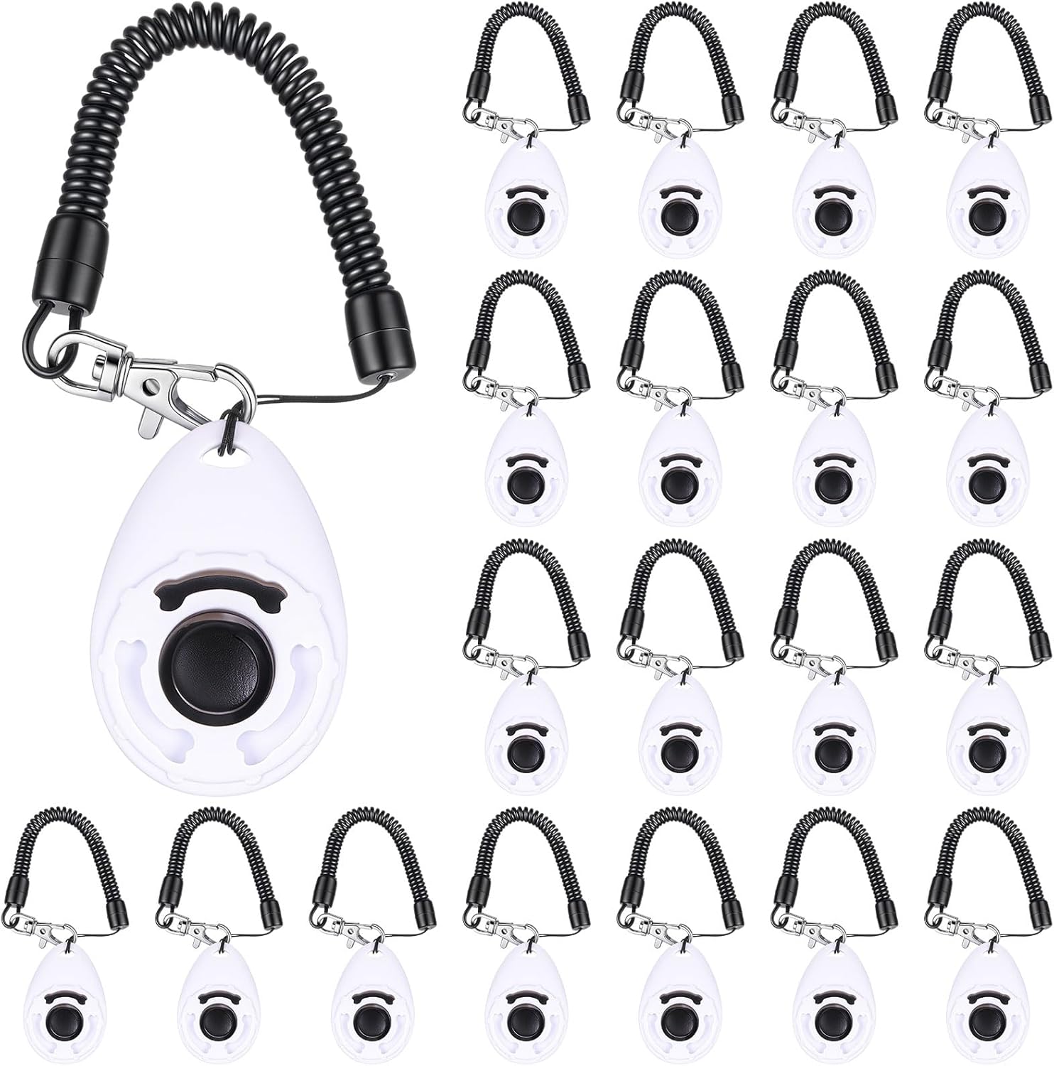 Frienda 18 Pieces Dog Training Clicker, Pet Behavioral Training Clickers with Wrist Strap for Dogs Cats Puppy Birds Horses (White)