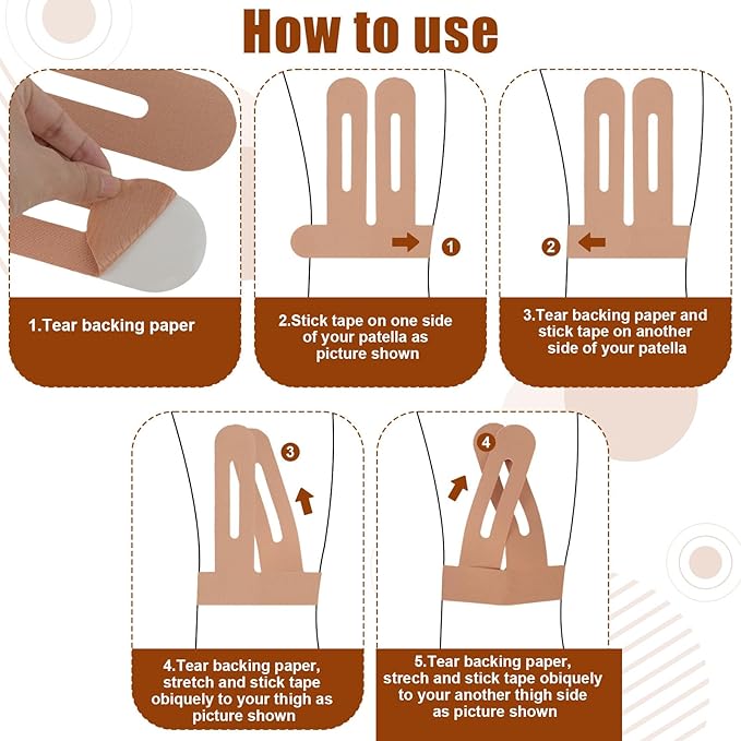- Tape Precut Strips: This kinetic tape for knee is designed with a single pre-cut piece of construction that naturally conforms to the contours of the knee. No scissors are needed, so it's ready to use right out of the package, saving time and allowing for a seamless fit