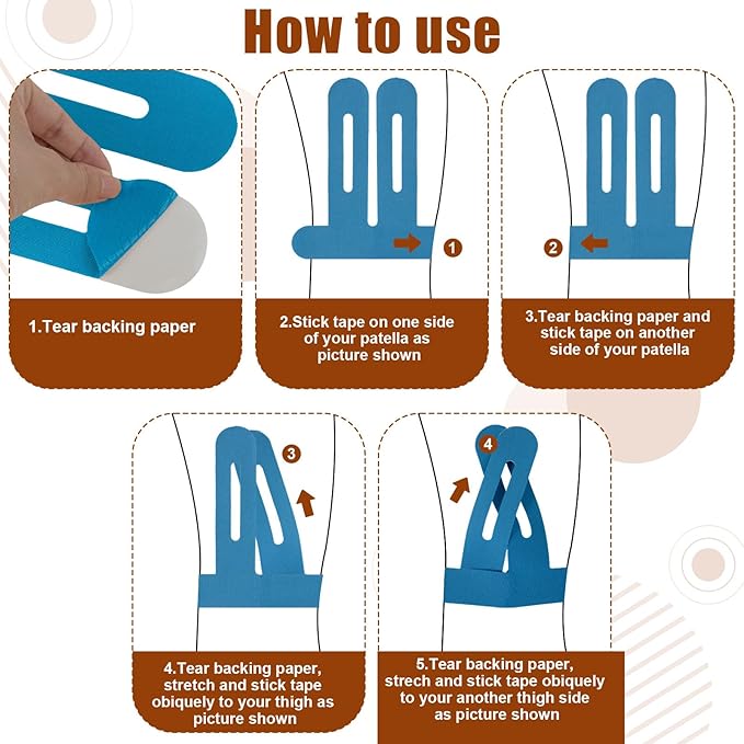 - Tape Precut Strips: This kinetic tape for knee is designed with a single pre-cut piece of construction that naturally conforms to the contours of the knee. No scissors are needed, so it's ready to use right out of the package, saving time and allowing for a seamless fit