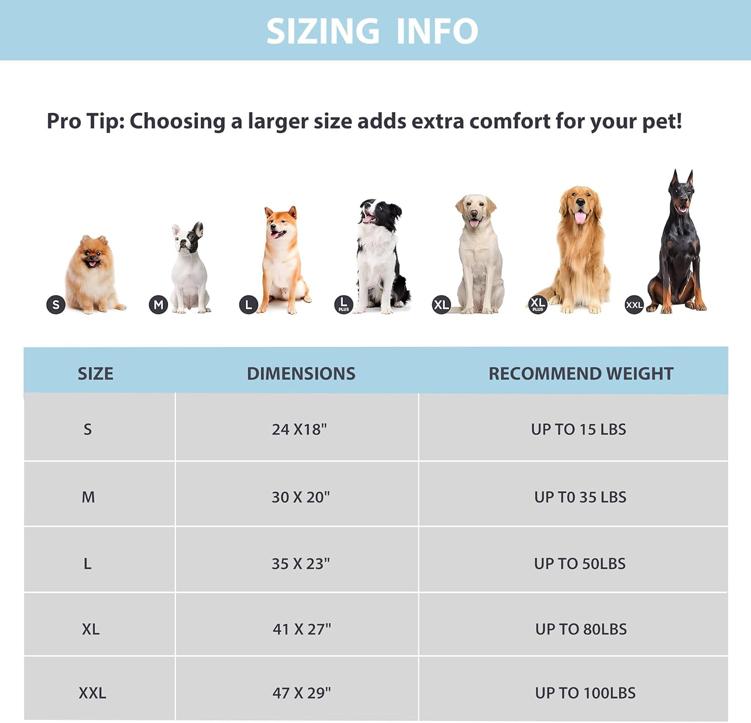 - Breed Recommendation : 24"L x18"W x 0.8"H
