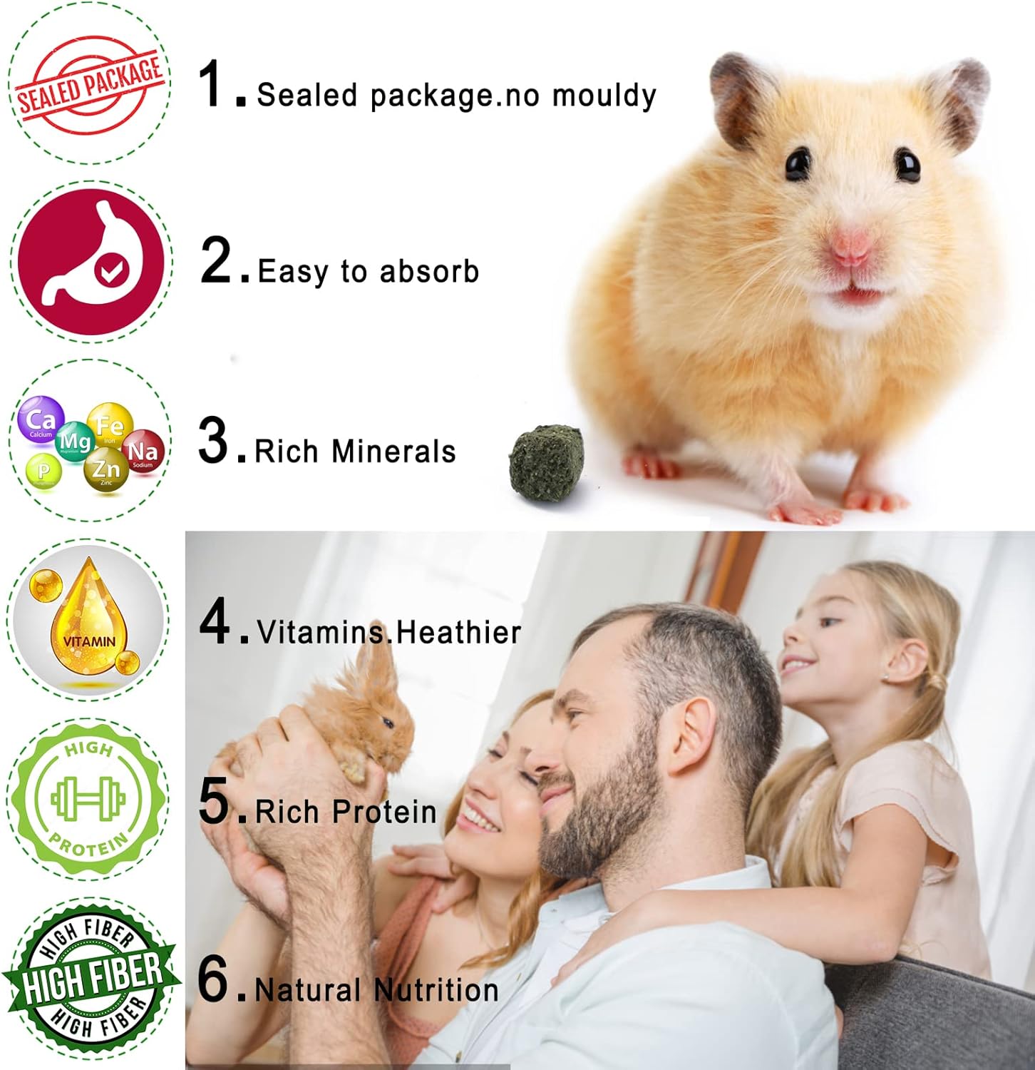 - √ A Cleaner Way to Feed --- If you hate the mess caused by feeding timothy hay, these cubes will make your pet's feeding environment cleaner.