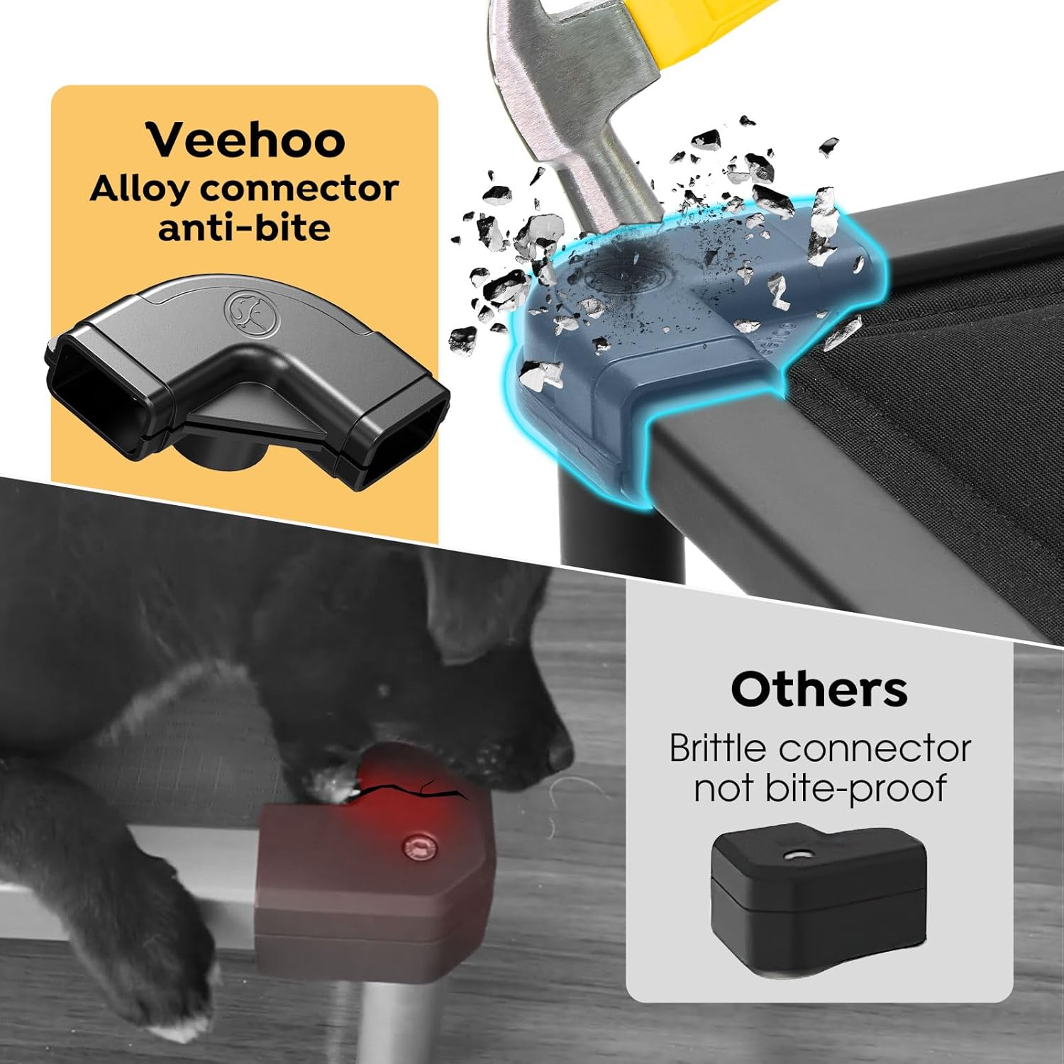 Veehoo Chew Proof Elevated Dog Bed, Durable Raised Pet Cot with Soft PP Cotton-Filled Waterproof Mat, Washable Padded Cot for Indoor, Outdoor & Camping, 35-Inch, Black