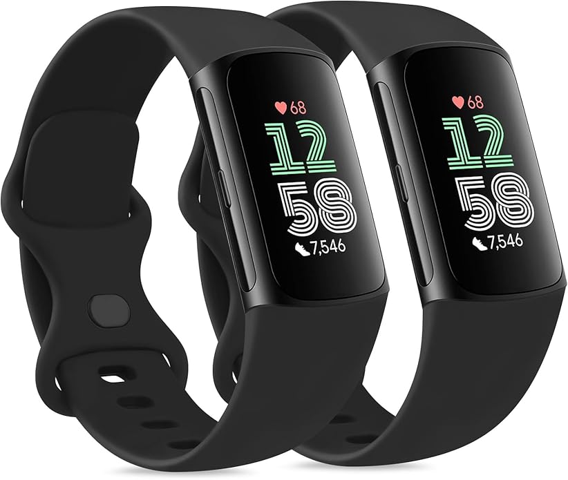 2 Pack Bands Compatible with Fitbit Charge 6 / Fitbit Charge 5 Bands for Women Men, Waterproof Classic Soft Sports Replacement Wristbands