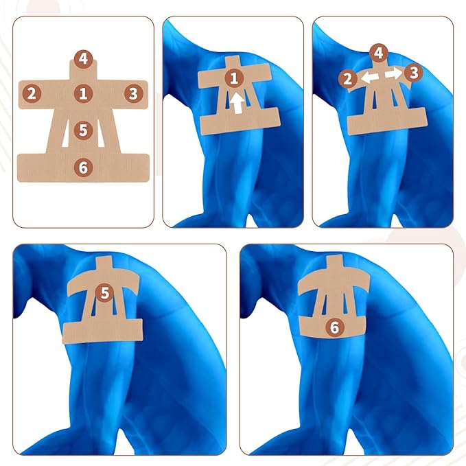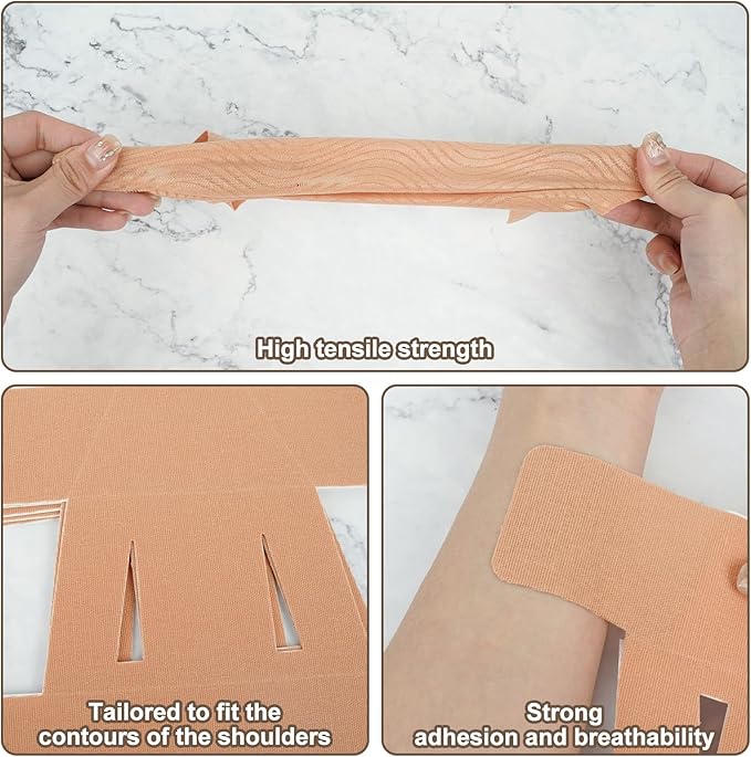 - Unique pre-cut design: Experience the convenience of our pre-cut kinesiology tape for shoulder that are carefully crafted to fit the contours of your shoulders perfectly. Whether you're lifting weights, running or playing sports, this customized shoulder tape ensures optimal support and protection during your workout