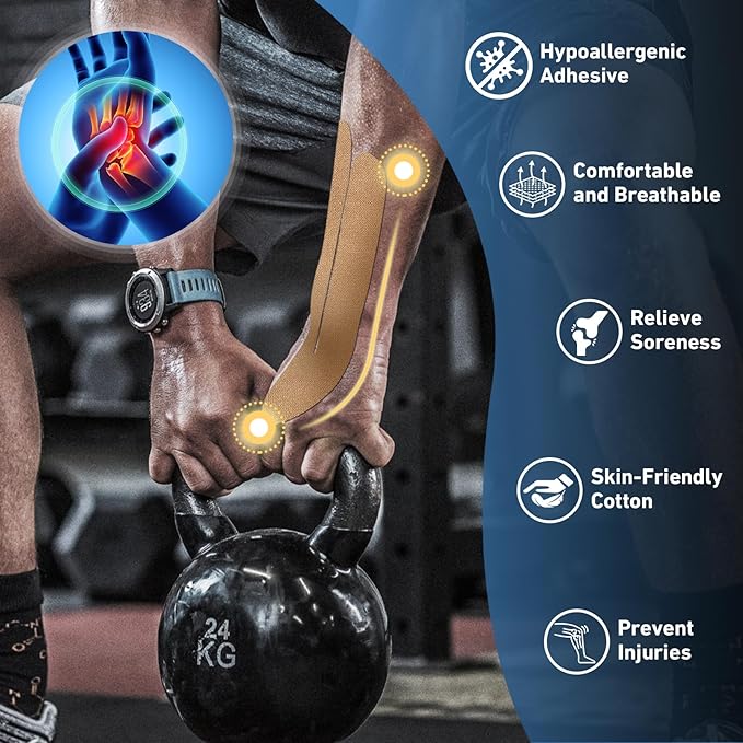 - 💧Waterproof Durability for Hand Movements - Our tape features a water-resistant adhesive that withstands frequent handwashing, rainy days, and even intense sports activities, maintaining reliable support no matter the conditions. Made from 100% breathable cotton, this tape is skin-friendly and perfect for prolonged wear without irritation or discomfort