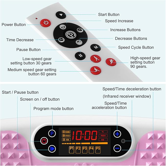 - Multi-purpose Workout and Strength Enhancement: The vibration plate stimulates muscles with high-frequency vibrations, inducing additional muscle contractions and activation. This helps to burn calories and fat quickly, shedding excess pounds faster than running and helping you achieve your fitness goals more quickly