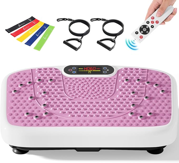 - Feature-rich and Efficient: The power plate offers both manual and automatic modes, with a choice of 120 levels of vibration speed. It comes with resistance training bands and exercise bands for a comprehensive full-body workout. Get in shape in just 10 minutes a day