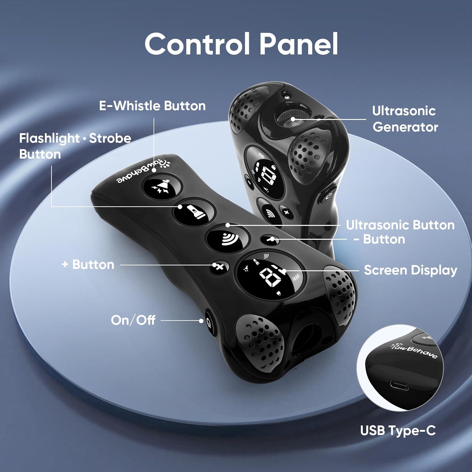 - ✔️ 🧠 Smart, Safe & Humane – No shocks, sprays, or harmful methods. PawBehave uses frequency modulation, sound distraction, and light cues to positively guide behavior—ideal for both training and correcting.