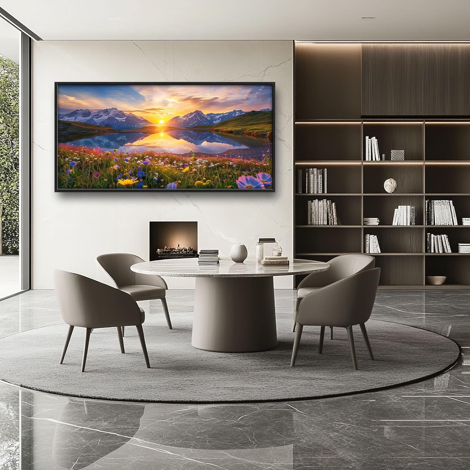 - 【Unique Design】A breathtaking sunrise over the Alps, with vibrant wildflowers blooming in front of crystal-clear waters reflecting mountains and sky. The sun's golden rays gently illuminate snow-capped peaks, creating an enchanting scene that captures nature at its most beautiful.