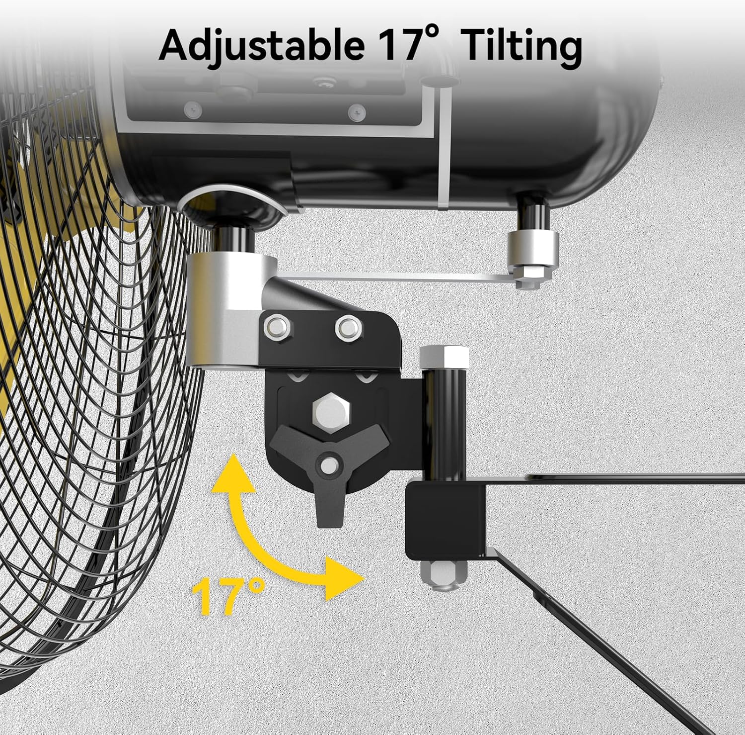 - Adjustable Tilting & Oscillating: Customize airflow with 80° oscillation and 17° tilt to enlarge the cool airflow area. Engineered for commercial industrial wall fan oscillating use—the noise is louder than household fans but lower than comparable industrial models