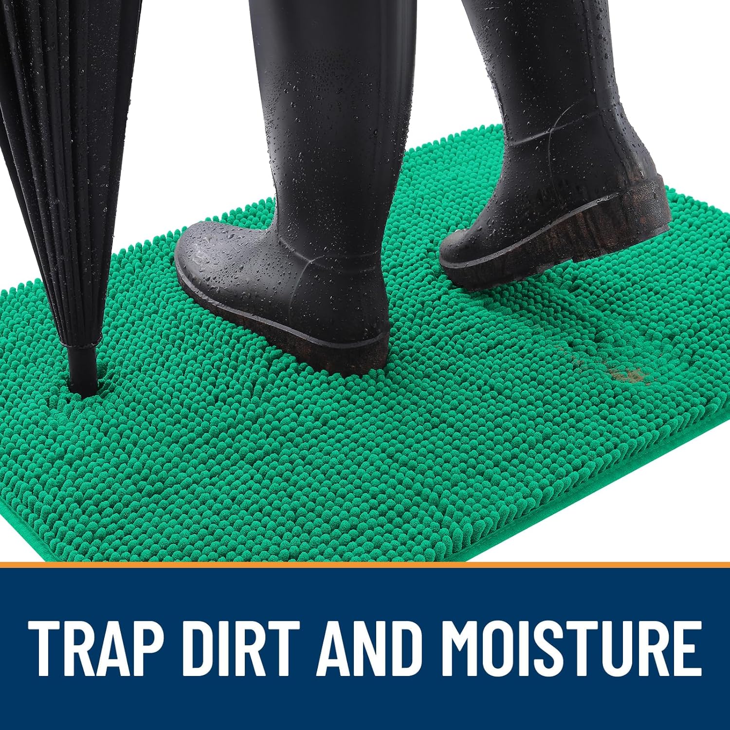 OLANLY Dog Door Mat for Muddy Paws 24x16, Absorbs Moisture and Dirt, Absorbent Non-Slip Washable Doormat, Quick Dry Chenille Mud Mat, Entry Indoor Entryway Carpet for Inside Floor, Emerald Green