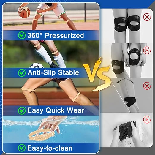 - 【All-Day Stability】 Reinforced elastic bands and anti-slip silicone lining keep the patellar strap securely in place, even during rapid lateral movements or sprints