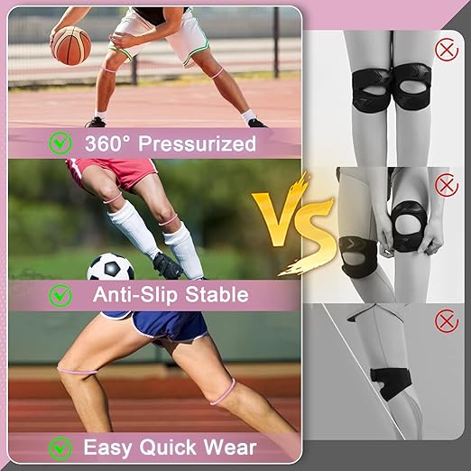 - 【Flex-Fit Motion Contour Design】The flexible silicone ring moves with your knee's natural motion during basketball jumps or soccer kicks. Smooth interior minimizes friction during repetitive actions.