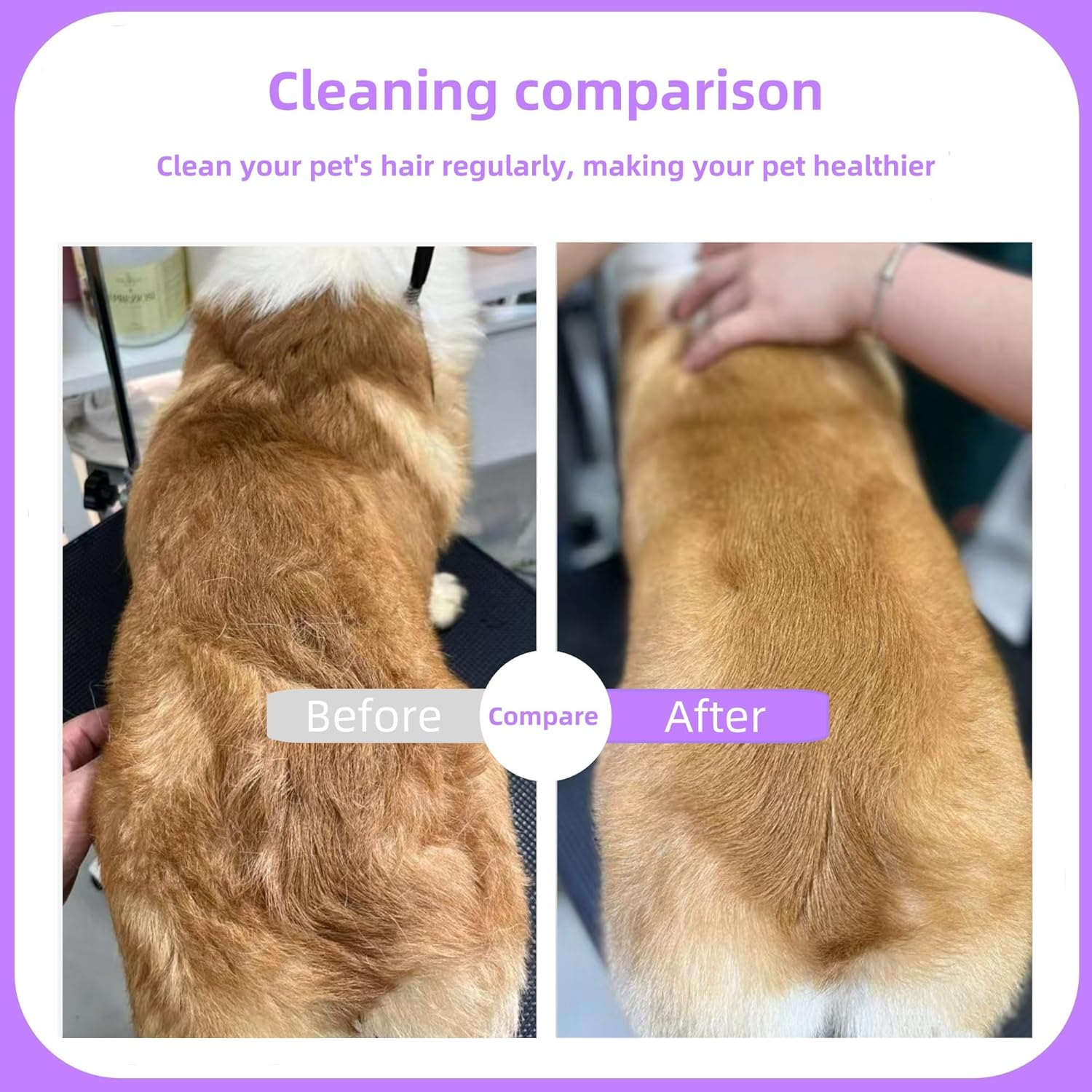 - [ Ideal Cleaning Effect ] Regular use of this pet comb for cats & dogs can effectively remove loose hair, knots, tangles. Suitable for medium, long, coarse, fine or curly dogs/cats to to make your pet fall in love with combing and keep your home clean and hygienic.