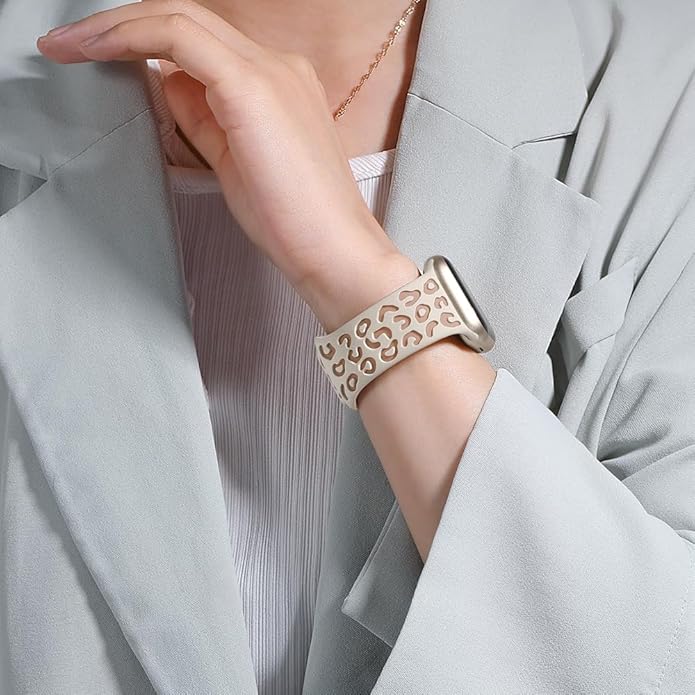 - 【Unique Two-Tone Engraved Leopard Watch Band】: A Unique Colorful engraved pattern/totem will give people more pride, belief and reflecting their personality. Made of soft and breathable silicone material, which is skin-friendly, waterproof, lightweight and easy to clean, ensuring a safe wearing experience without causing skin irritation. It is very comfortable to wear even for long periods of time.