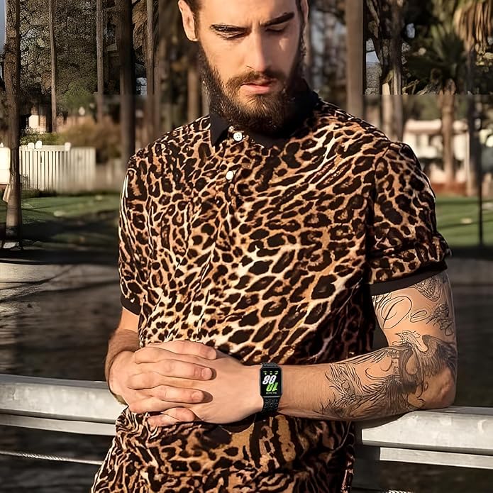 - 【Unique Two-Tone Engraved Leopard Watch Band】: A Unique Colorful engraved pattern/totem will give people more pride, belief and reflecting their personality. Made of soft and breathable silicone material, which is skin-friendly, waterproof, lightweight and easy to clean, ensuring a safe wearing experience without causing skin irritation. It is very comfortable to wear even for long periods of time.