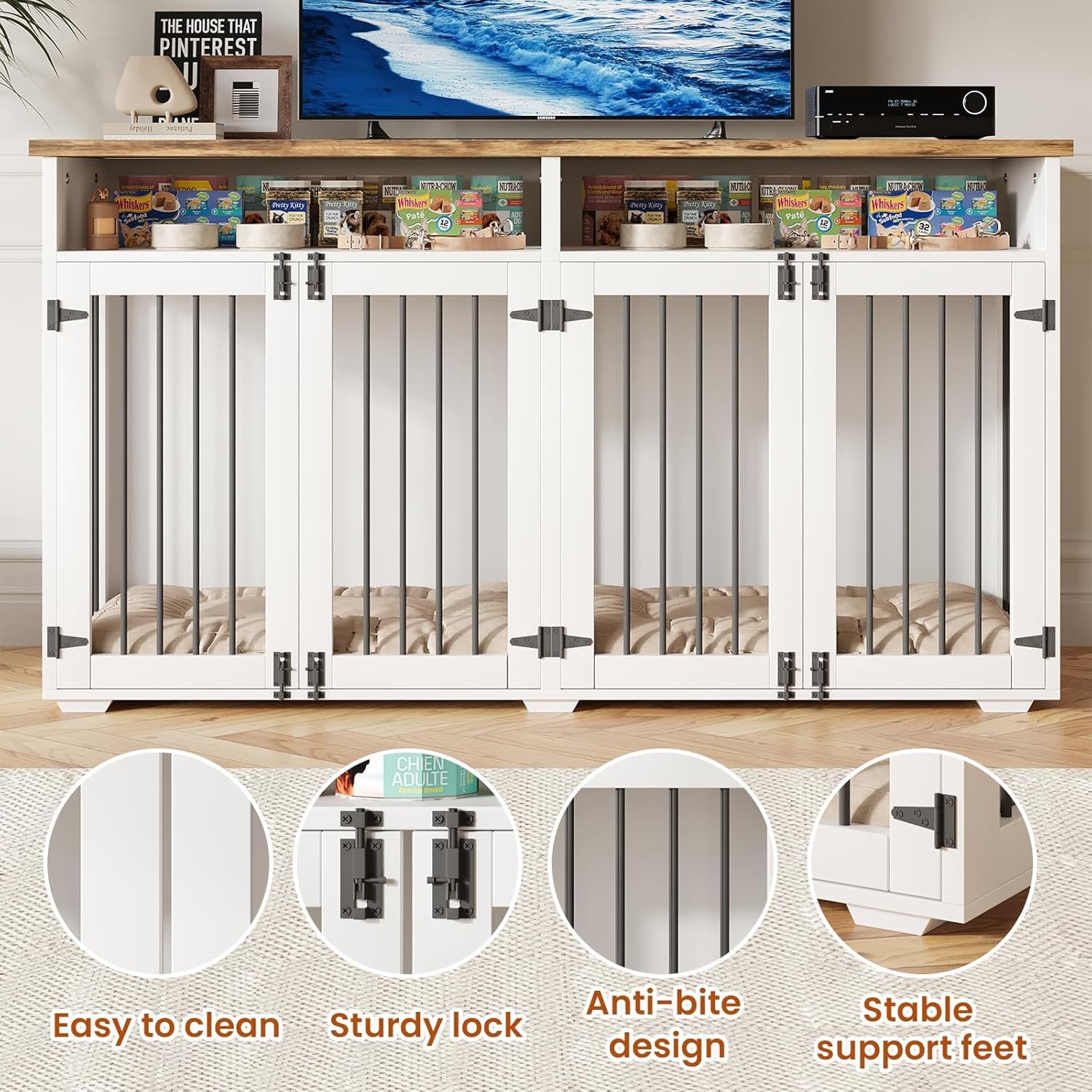 - STURDY CONSTRUCTION: Sturdy frame and bite-proof design are suitable for active pets, and this dog kennel furniture has an effective internal weight capacity of 200 lbs to ensure a safe and comfortable environment for your dogs