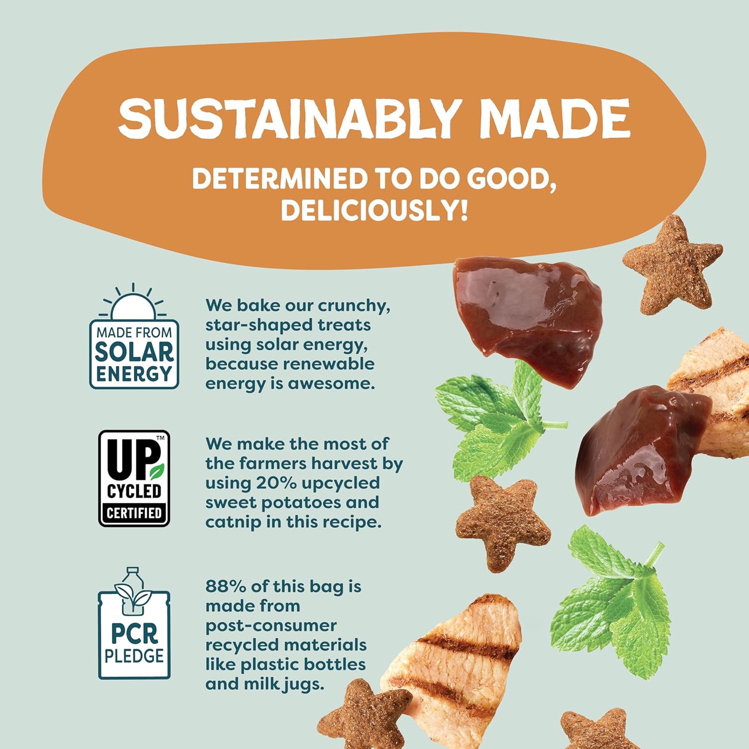 - Upcycled With Care: We work with farmers to rescue their imperfect sweet potatoes that have all the same healthy nutrients. This means every bag of our treats decreases food waste while saving valuable resources.
