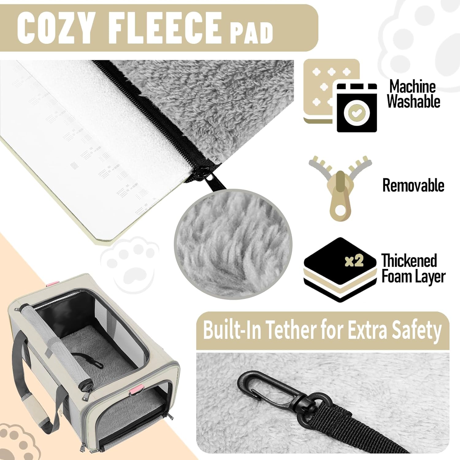 - Secured with auto-locking zippers, your pet can't escape easily by pushing against the zipper from the inside. An inner tether for extra safety. A reflective stripe on the side helps you feel at ease when you walking the dog at night