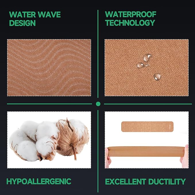 - Advanced Waterproof Adhesion – Durable sports tape withstands sweat, showers, and intense workouts, staying securely in place for up to 5 days.