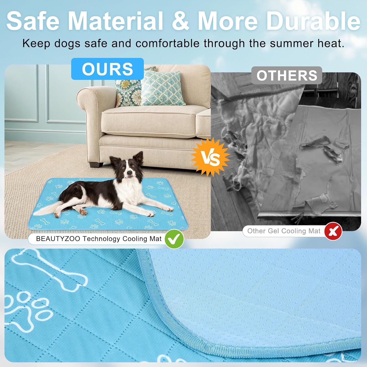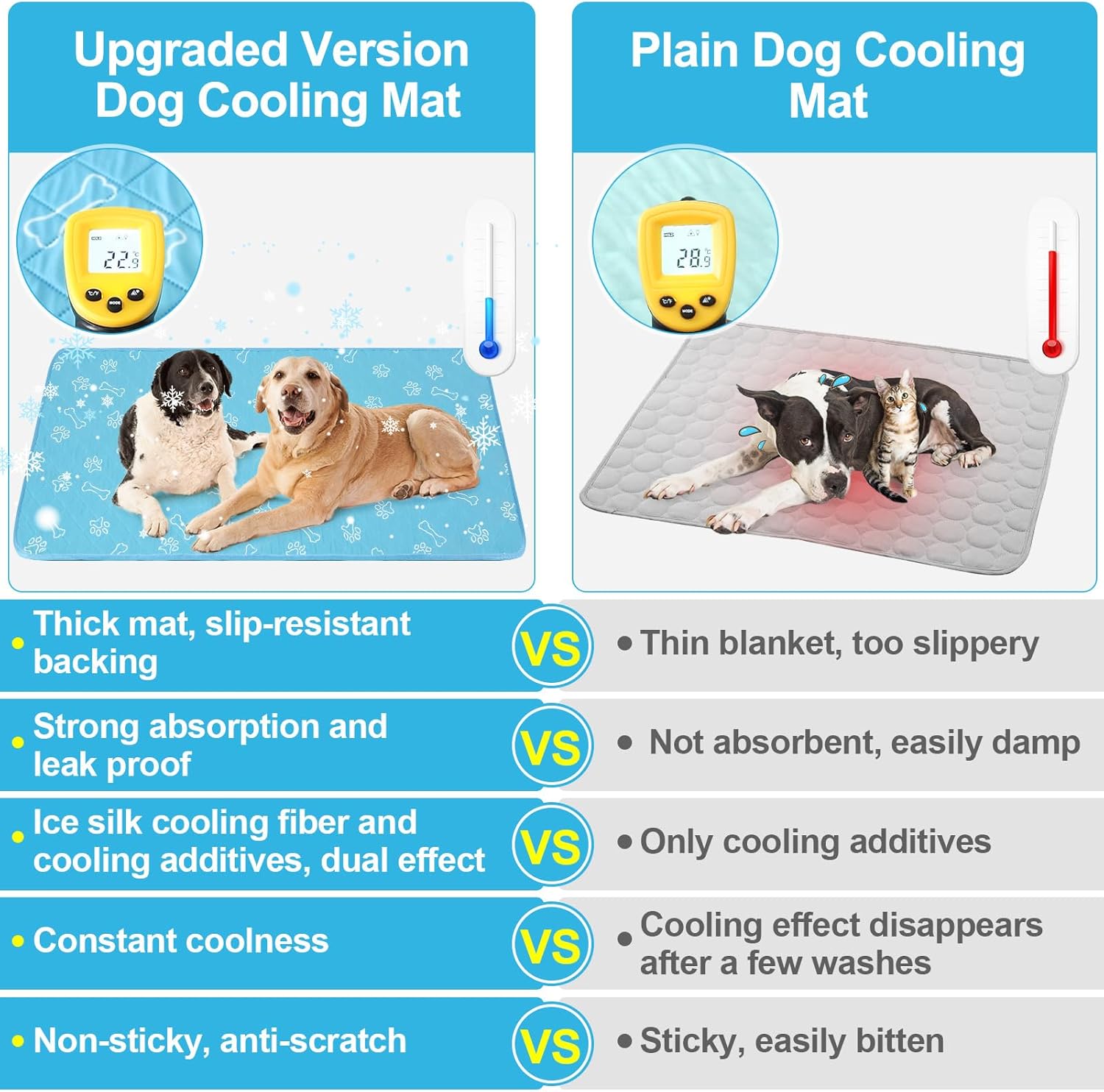 - Elaborate Design-- The inner layer of the mat had water absorption material to stay dry, urine and odor control. Besides, our summer dog sleeping pad is extremely breathable. Excellent craftsmanship can ensure self-cooling pet mat is durable enough and chew proof. It's also could be used as a pet pee pad or feeding mat.